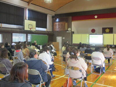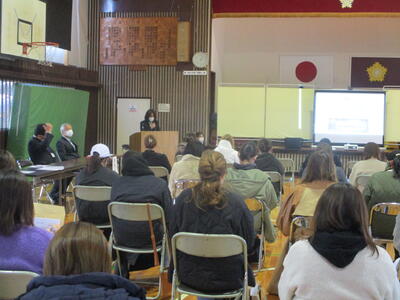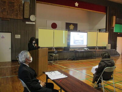 2月21日(火)に木倉小体育館で新入生保護者説明会がありました。本来ならば来年度入学の園児の皆さんも参加して、来年度6年生になる現5年生と交流をする予定にしていました。コロナ禍のため今回は保護者の皆様のみの保護者説明会に変更しての開催となりました。