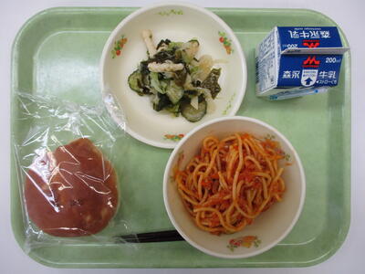パインパン、スパゲティミートソース、イタリアンサラダ、牛乳