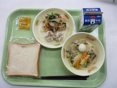 食パン、牛乳、タイピーエン、シューマイ、中華あえ、みかんジャム