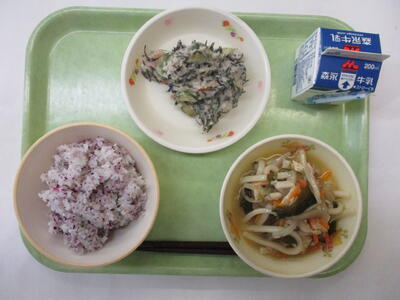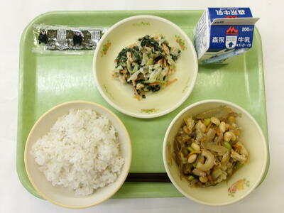 おにぎりやお弁当に欠かせない「梅干し」は昔から作られている梅の漬物です。ごはんとよく合いますが、今日の給食のように野菜と混ぜたり、魚や肉を煮るときに入れたり、揚げ物に混ぜたりと様々な料理に使われます。くさみ消しや殺菌の効果もありますが、梅干し独特の酸っぱさで食欲が出たり、疲れをとったりもしてくれます。また、鯖には骨があるので、上手に取りながら食べてくださいね。