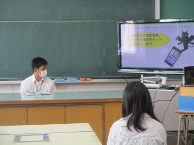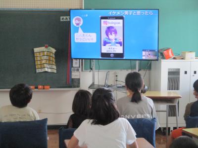 教育講演会では、御船中学校の真嶋教頭先生をお招きし、「スマートフォン、SNSに関わる諸問題について~中学校の現状から~」という演題でお話をしていただきました。今回の講演会は、理科室から各教室へ配信して4~6年児童と保護者の方々が視聴しました。