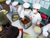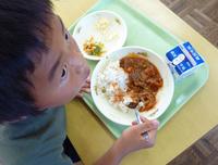軟らかくて食べやすいので、子どもたちも大喜びでした。(写真は1年生の給食の様子です。)