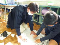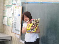 また、先週から学習支援ボランティアとして新たに来校している平成音楽大学2年の学生さんにも、法被作りのお手伝いをしていただきました。