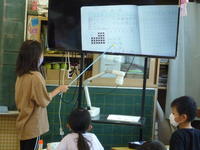 子どもたちは箱の中にあるチョコレートの数を求めるために、これまで学習してきたかけ算九九を使って様々な方法を意欲的に考え、発表しました。ノートの書き方や発表の仕方なども含め、日頃の学習の積み重ねが表れた授業でした。