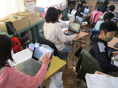 そして今、子どもたちは地域の誇りであるこれらの井手などについて、学習したことをリーフレットで発信するためにまとめています。一人一人タブレットを使い、レイアウトや見出し、写真や文章等を工夫して思いが伝わるリーフレットづくりに熱心に取り組んでいました。