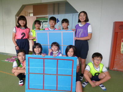 折れたり、外れたりしていた竹の棒を取り外し、新たに園芸用の緑色の支柱を使ってきれいなシートを作ってくれました。このシートにはトイレのスリッパを次の友達のことを考えて、きちんと並べてほしいという思いやりの心が詰まっています。まさに、児童会スローガン、あいうえおの「お:思いやる言葉があふれる木倉小」と「い:いつでも自分から動く木倉小」です。