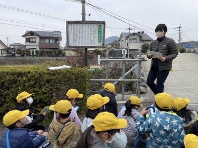 子どもたちは事前に学習してきた中で、疑問に思ったこと、もっと知りたいことをどんどん質問していきました。実際に現地へ行き、自分の目で見て、地域の方々の思いを聞く中でふるさと御船町を自慢に思う気持ちがさらに大きくなっていったようです。
