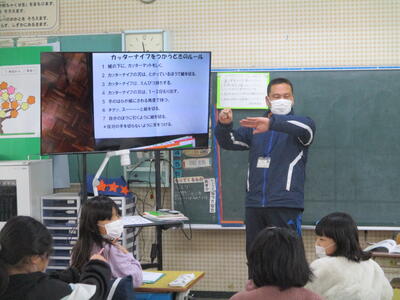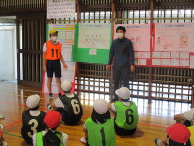 それぞれの場には運動のこつ(スキルポイント)が書いてあるボードがあり、子ども達は運動のこつを意識して、楽しく運動していました。木倉小ではすべての学年で、楽しみながら運動のこつを学び、運動が好きになる体育学習をめざして実践しています。