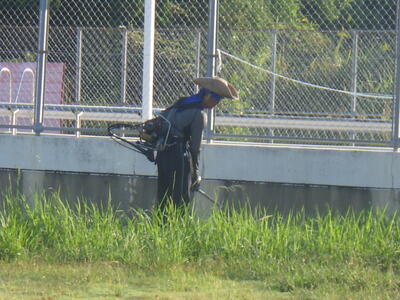 10月4日から6日にかけて、木倉小学校歴代PTA会長会の校内除草作業ボランティア活動が行われました。休日返上で学級園周辺と正門周辺の刈込をしていただき、6日早朝からは、山本様、原田様、須藤様の3名で、遊具とプール周辺の仕上げ作業が行われました。