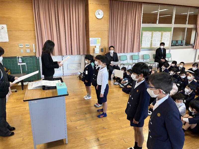 この後、教室では持久走大会の賞状や記録賞をもらい