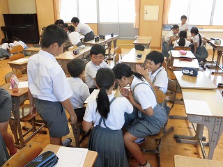 点訳ボランティア虹の会の方にゲストティーチャーとしておいでいただき、点字の仕組みや実際に点字を打つ体験をしました。