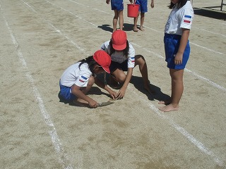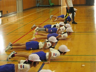 5年生の女の子たちが、平泳ぎの練習を頑張っていました。