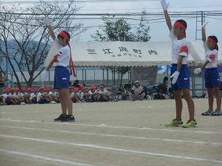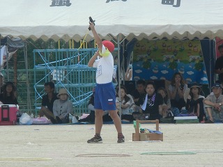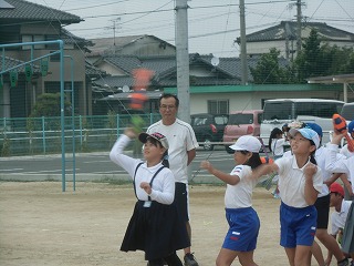4年生が1年生に縄に入るタイミングを教えている様子が見られました。