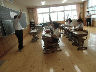 どちらの学級も教室で学習会を行いましたが、とにかく暑い!!普段エアコンで適温に管理された室内になれている体には、とても堪えました。少しずつ体を慣らしていく必要があるな…と痛感しました。