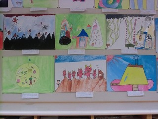 1年生では、自分の心の中の鬼を描いたものが黒板