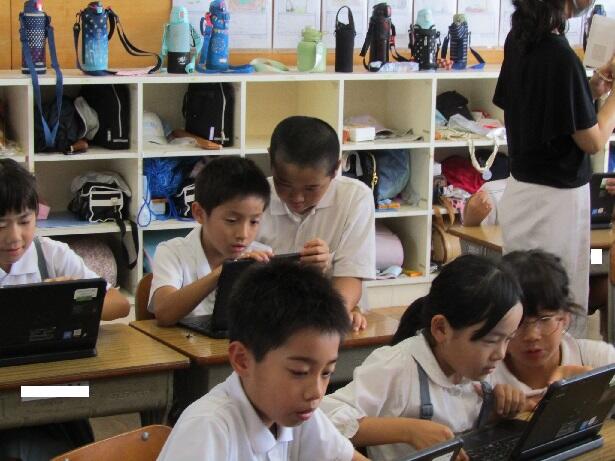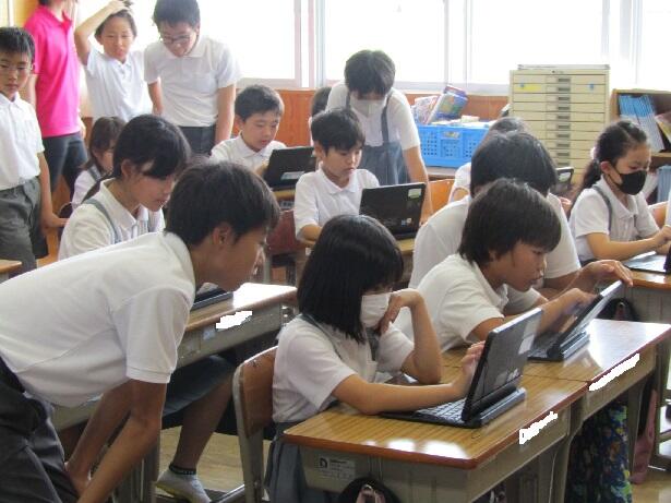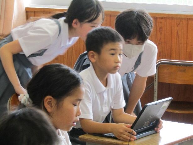 6年生から操作を教わりながら、楽しんでいる3年生でした。