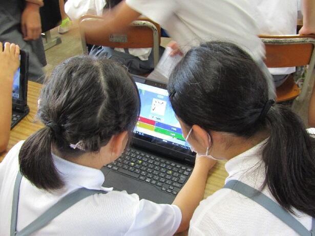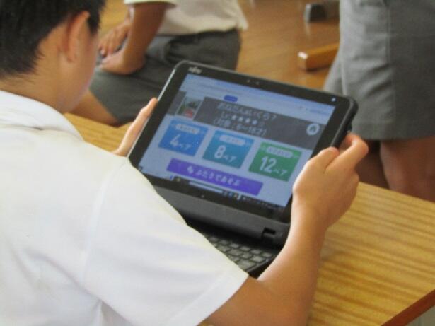 最後は3年生。今回もタブレットを使ったゲームです。