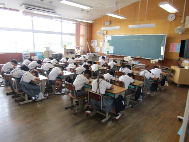 3年生は、本校の会議室をお借りしてテストを行いました。