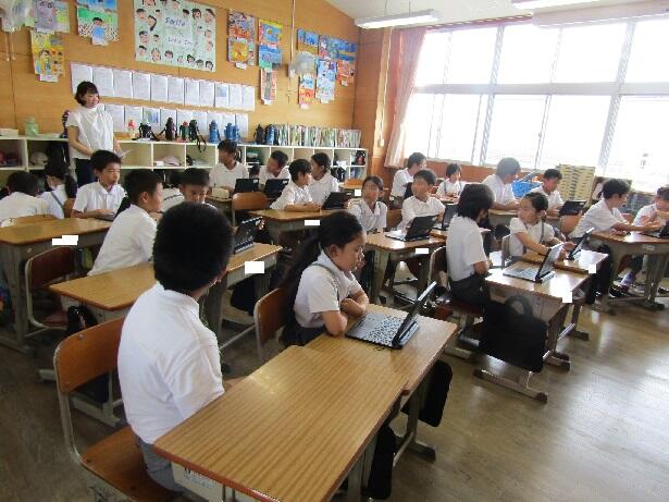 6年生が自分たちで準備したPCを使ったクイズを使った内容です。