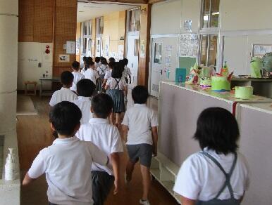 この後、1年生と2年生はスクールバスで分校に移動。
