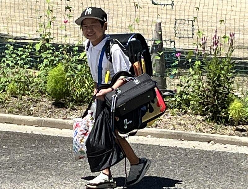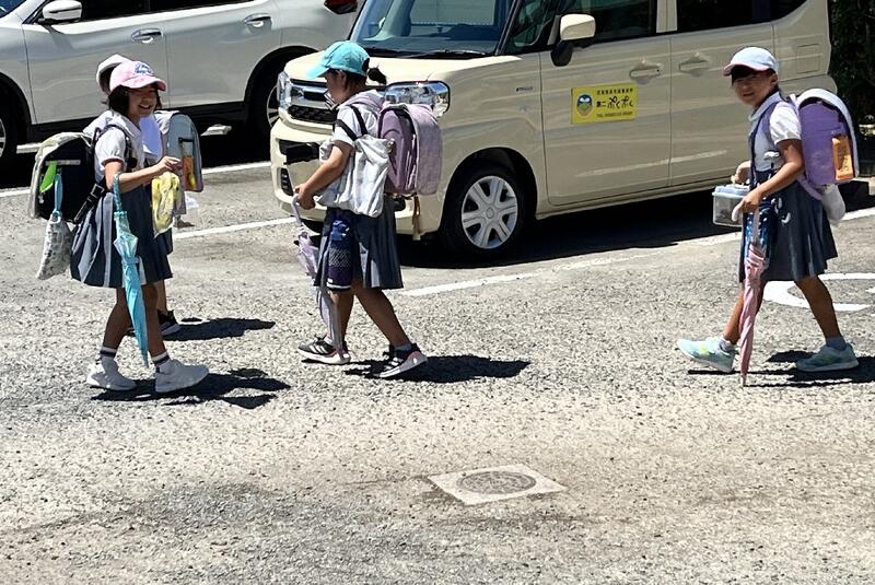 分校の子たちは駐車場で陰に入ってひと休み。