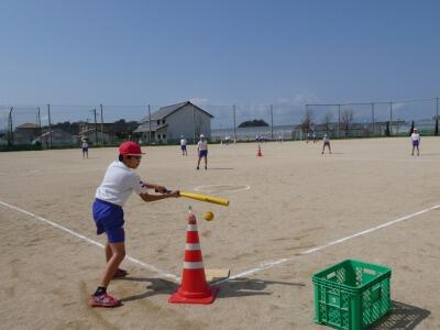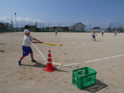 風のせいで、ボールがティーから転げ落ちるなどハプニングはありましたが、今日も楽しく学習することができました。