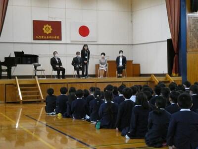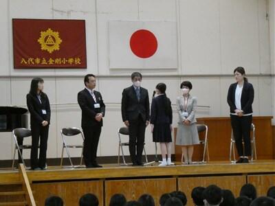 代表して6年生が歓迎の言葉を伝えてくれました。新しい先生方と一緒に、金剛小学校がさらにパワーアップしていくよう、力を合わせてがんばりたいと思います。