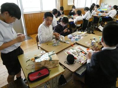 友達の筆の作り方も参考にしながら、楽しそうに3~4種類の筆を作っていました。