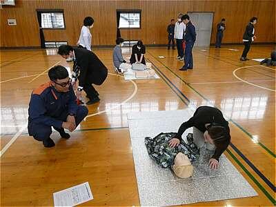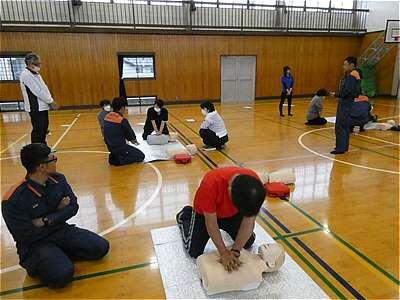 家庭訪問期間が終わり、今日は校内研修で救命救急の講習会が行われました。