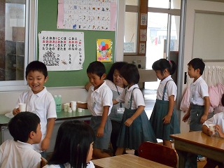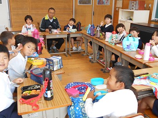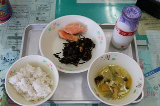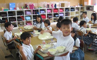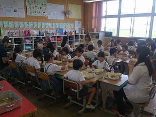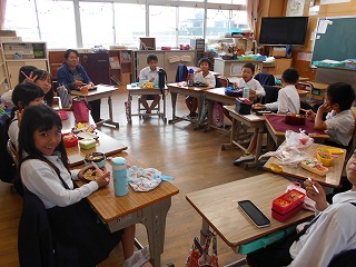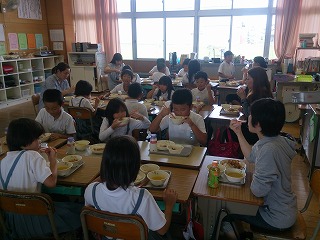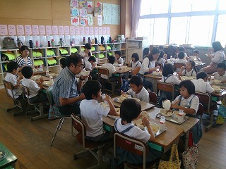 今日の給食は大豆が入ったかみかみメニューです。松本先生と会食です。