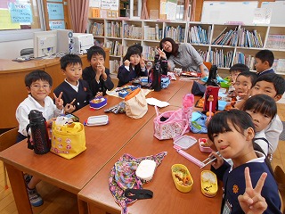先生方も5つの班に分かれて子どもたちと一緒にランチを楽しみました。