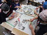 音楽の合奏をしたり、三年生から始まった書道の時間の様子を