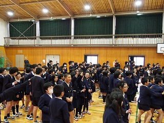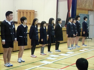 校歌を披露しました。新1年生のみなさん。4月を楽しみにしています。