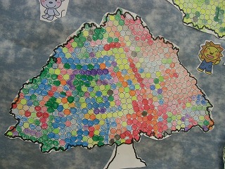 各クラスで取り組んだ結果、たくさんのエコの木が色づきました。