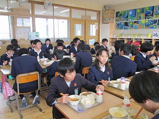 1年生と6年生が一緒に給食を食べました。