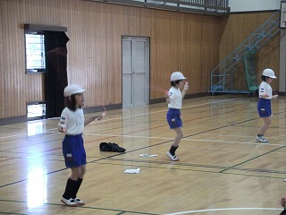 2年生は、2学期の後半から跳び縄を準備し、前とび・後ろとびから練習を始めました。