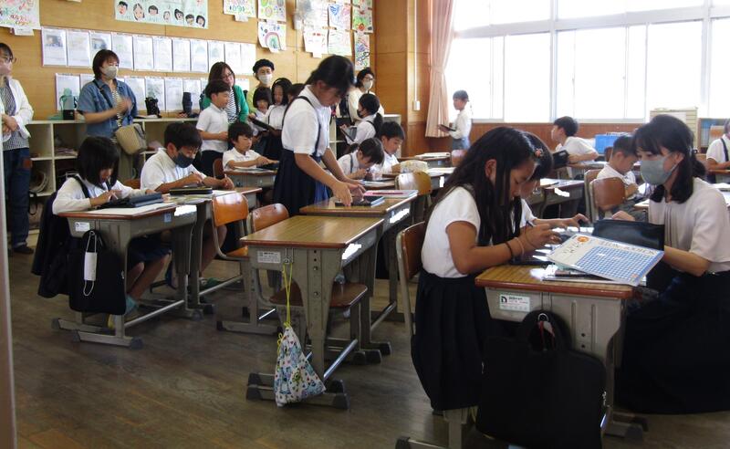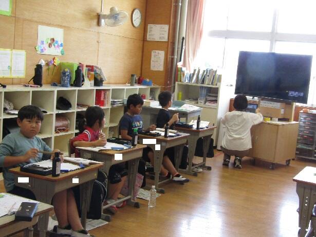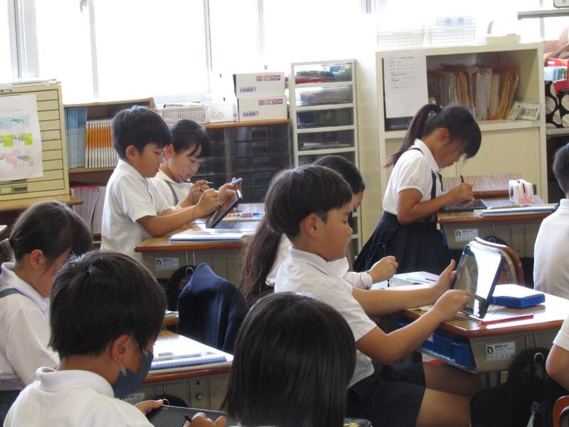 1年生は、まず算数。その後でタブレットPCの初体験でした。
