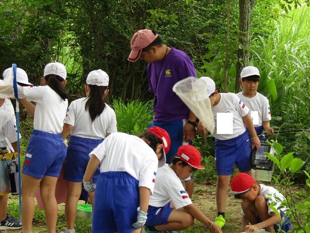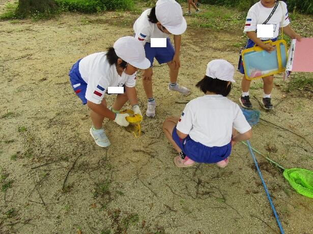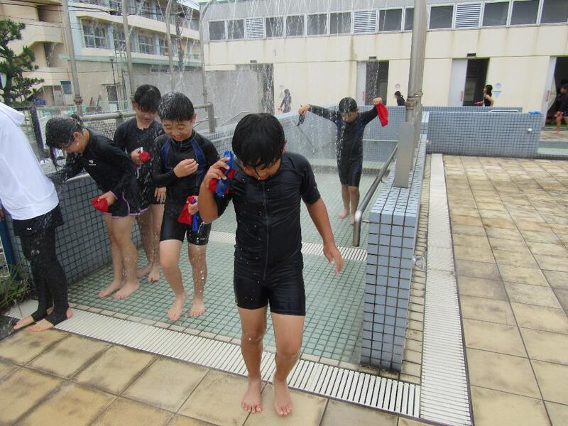 本校プールを使って体育(水泳&水遊び)の学習を始めました。