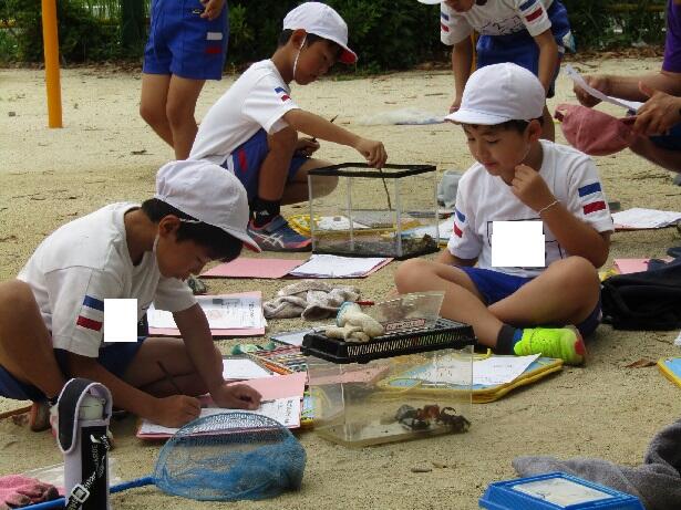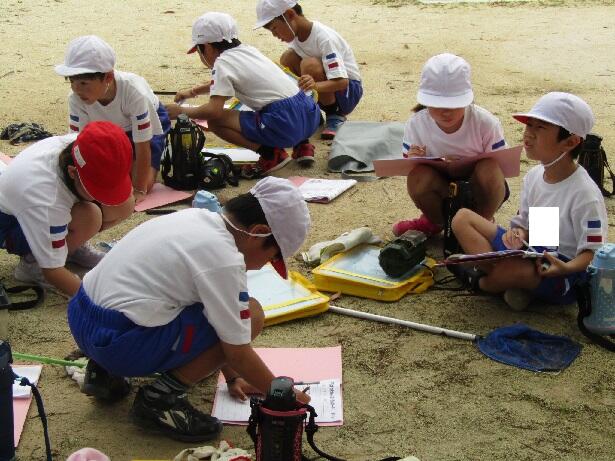 見つけた(捕まえた?)生き物のことを、学習カードに記録しています。