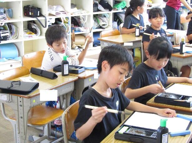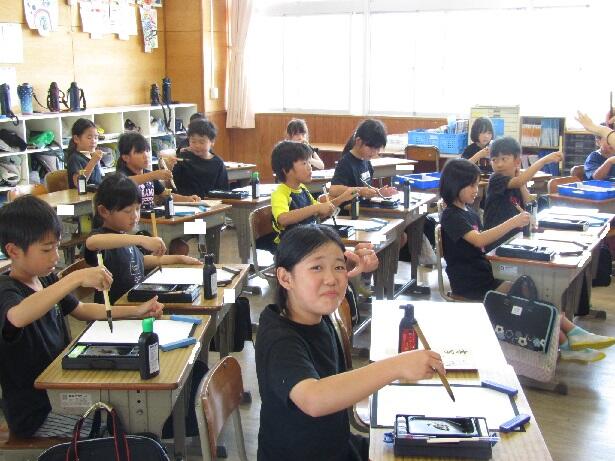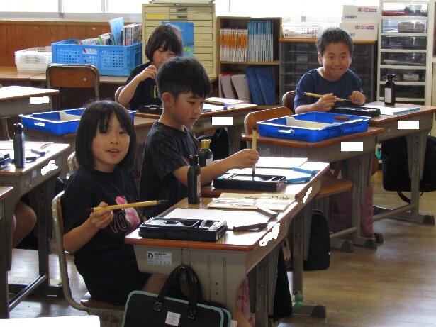 汚してもいい服に着替えて、いざ、「書写の授業をはじめます!」