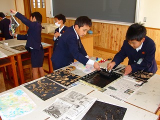 その後、黒のインクを付けて刷ると… 白くなる予定の所に意図しない模様ができて