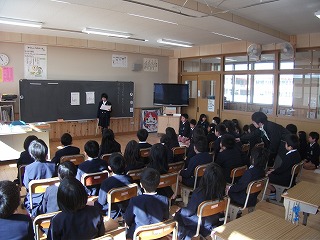 今日の3校時に、2年生教室にて3年生の発表を聞きました。