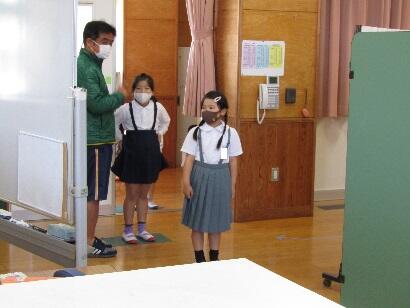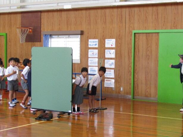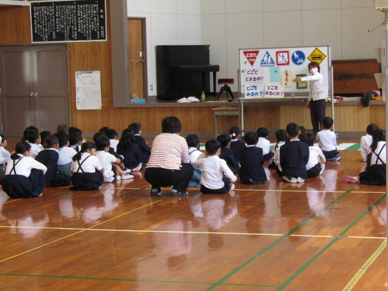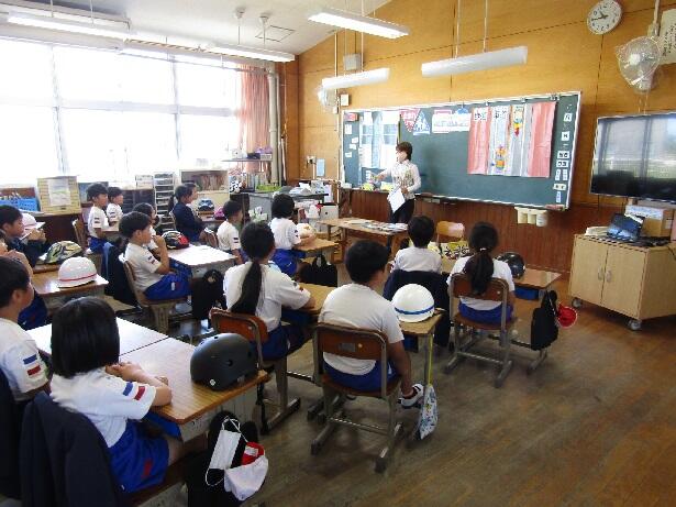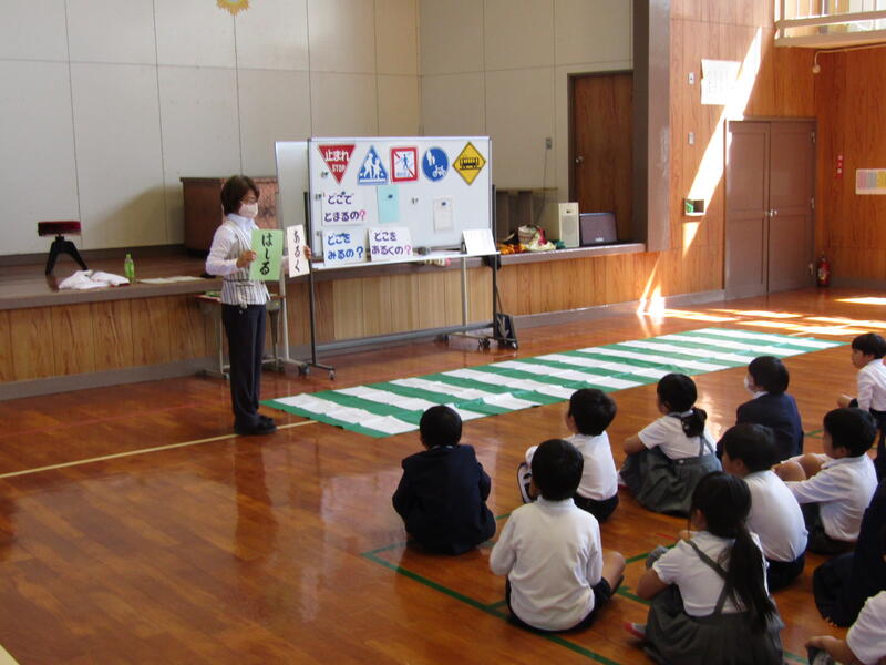 交通安全協会の方々、市役所危機管理課の方々、交通指導員の皆様方にお越し頂いて、子供たちが自分で自分の命を守るための勉強をしました。