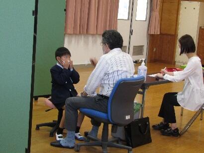 検査前、廊下で静かに(にこやかに)待っている子供たちも、