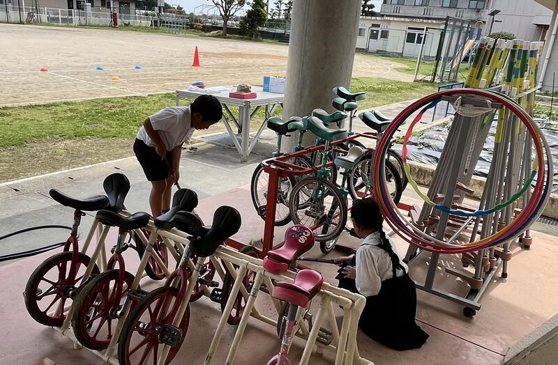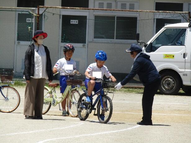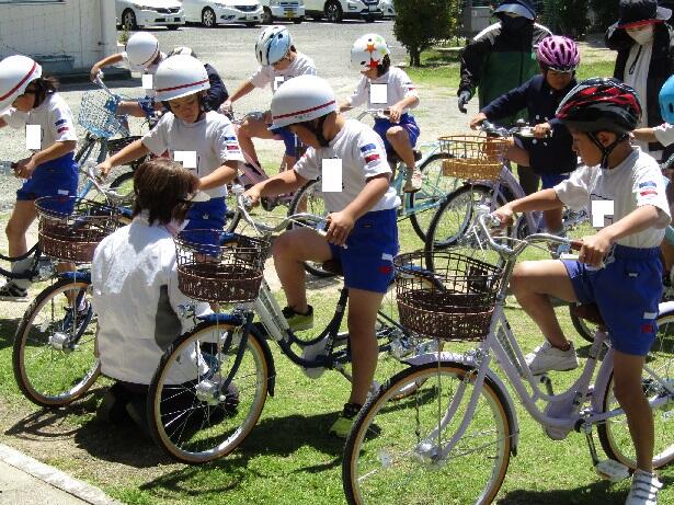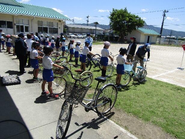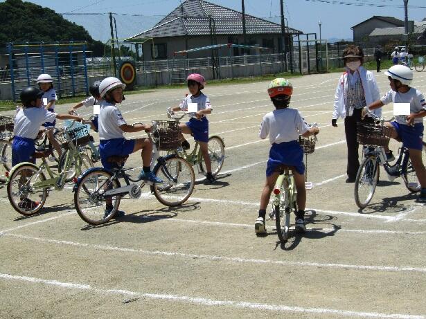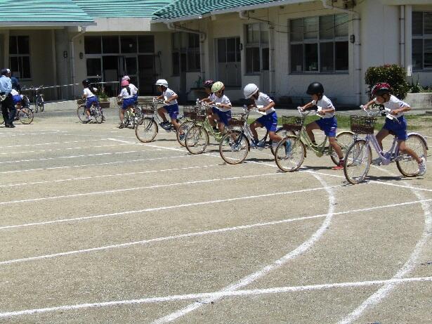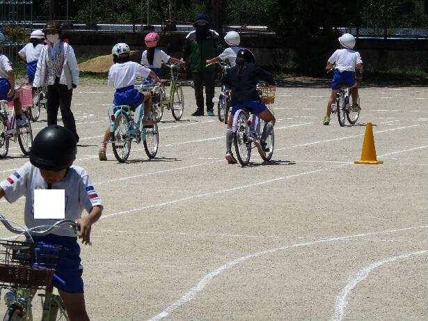 4校時は運動場で、自転車の安全な乗り方の練習です。