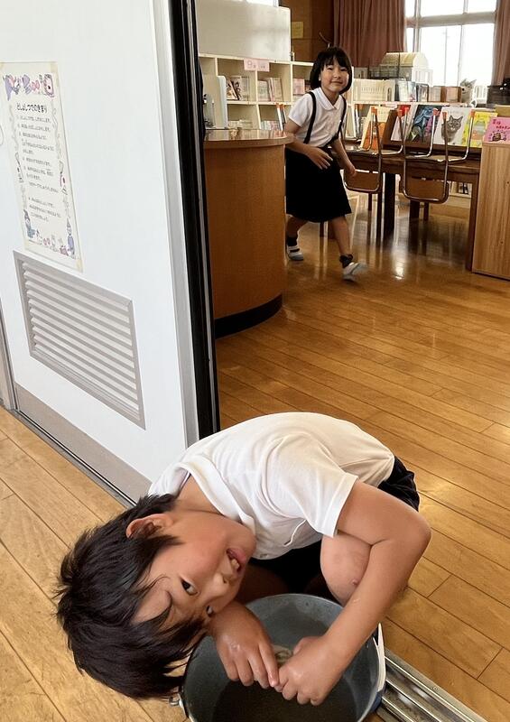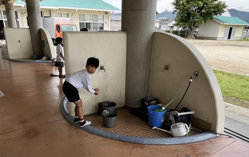 校長先生も参加されていました。先生の持ったバケツの中身が気になります。