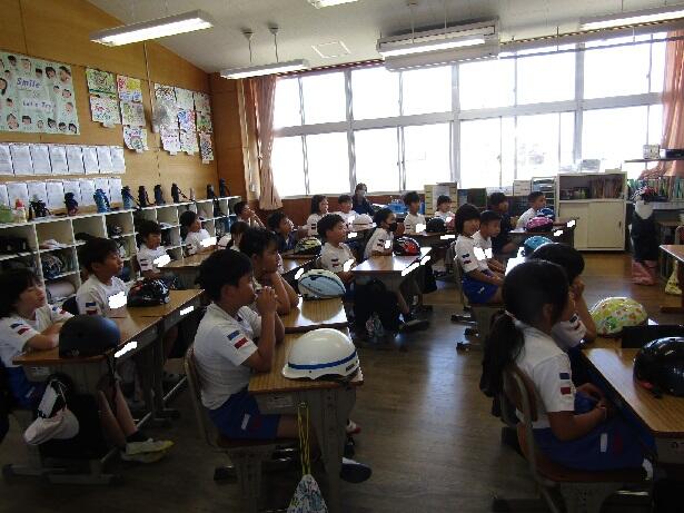 3校時からは3年生。まず、教室で交通ルールなどの勉強です。