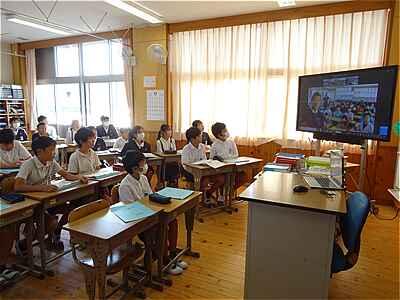 6年生は、今日山江村の山田小と万江小とリモートで交流を行いました。