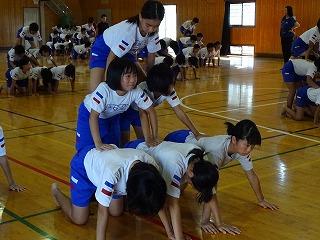 上に乗る4年生や5年生に優しく声をかけながらがんばっていました。