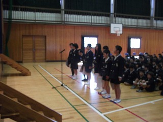 最後に、金剛小の校歌をみんなで元気に歌い、はなむけとしました。先生方には、金剛小の校歌を忘れずにいてほしいですね。